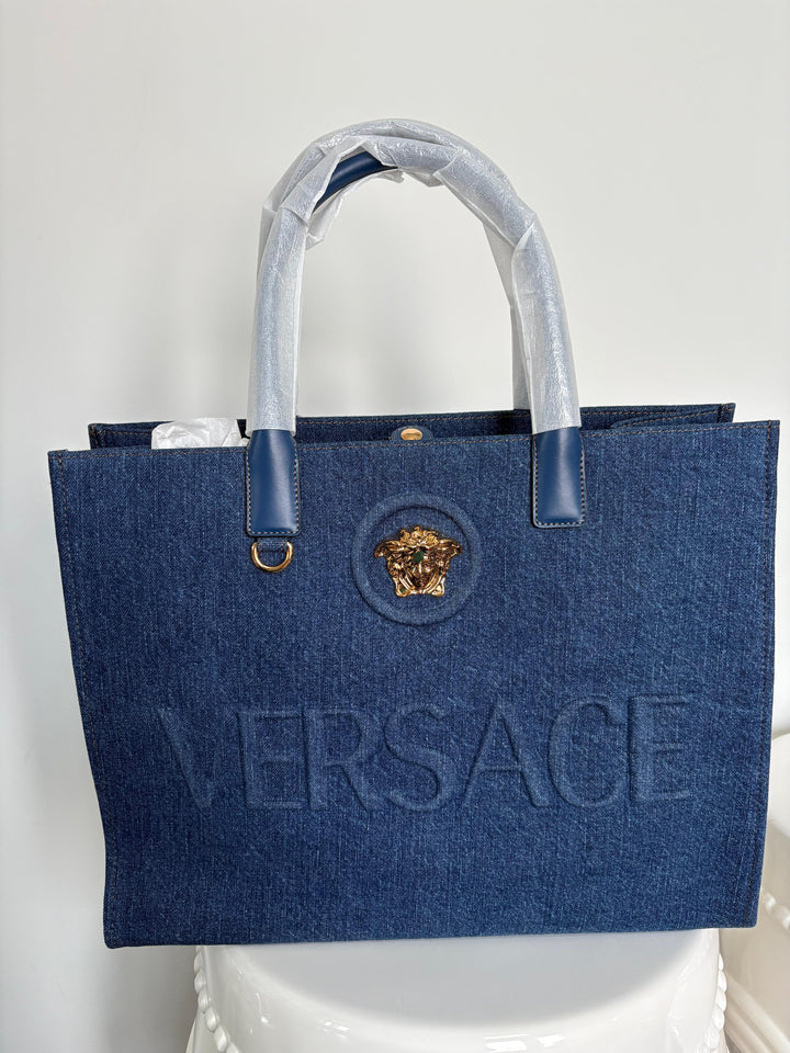 Versace Blue Denim La Medusa Large Tote