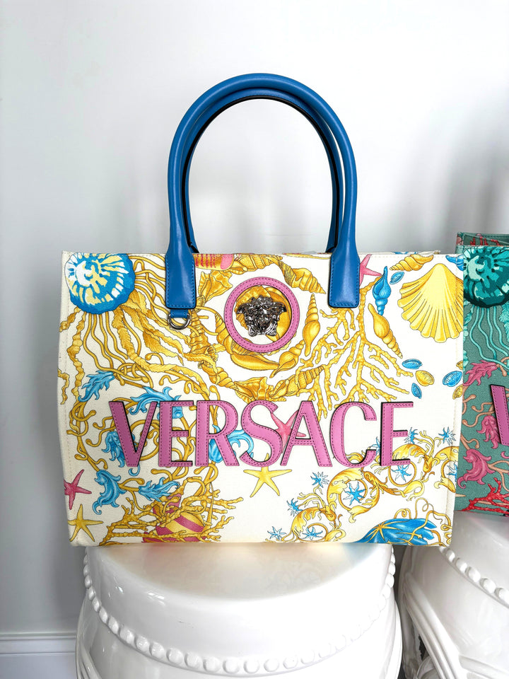 Versace White/Blue Underwater Barocco La Medusa Large Tote Bag