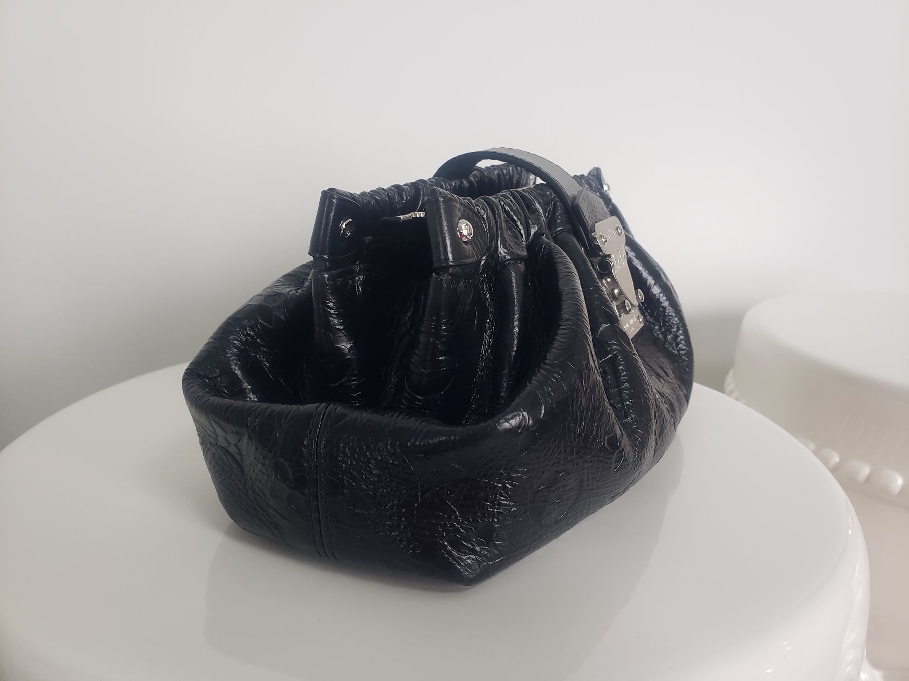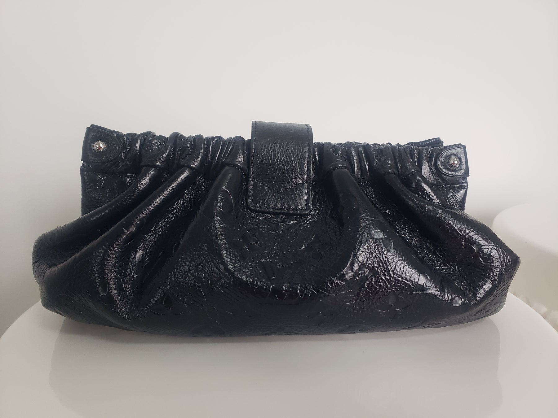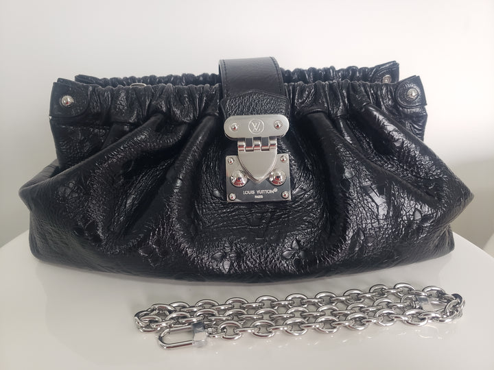 Louis Vuitton Black Pochette Sling PM Bag. The Pochette Sling is designed as the ultimate day-to-night style, and was a standout accessory on the Cruise 2026 runway. This edition is crafted from calfskin with silver-toned hardware, including a removable chain and signature S-lock. It is defined by its pleated design and can be carried by hand or tucked under one shoulder.