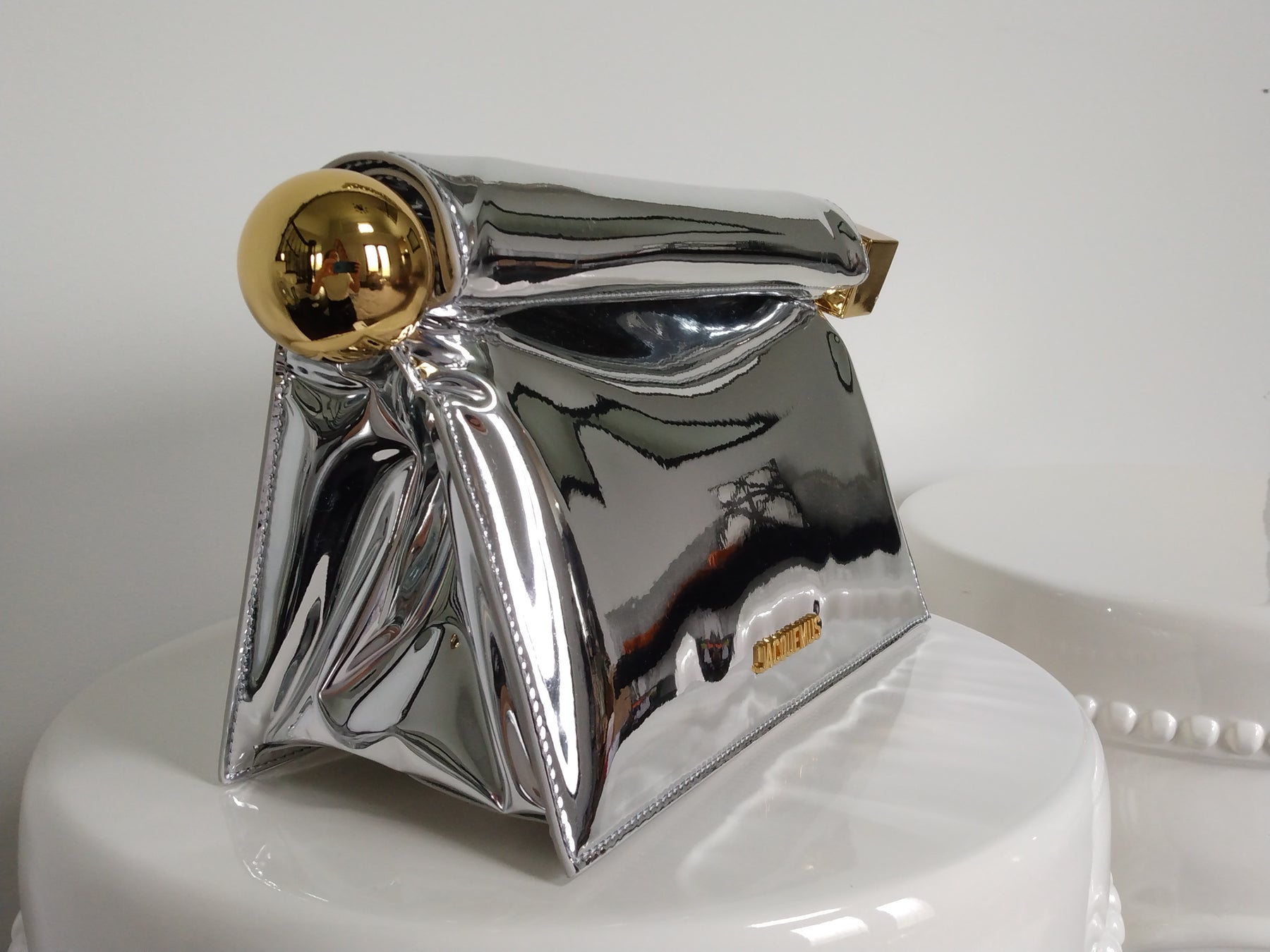 Jacquemus Silver Large Take out Rond Carré Clutch.