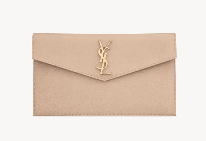 Saint Laurent Nude Uptown Pouch - Grain Leather. Small envelope clutch with a flap featuring THE CASSANDRE.